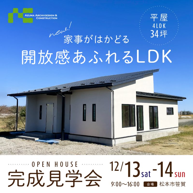 12/13(土)〜 12/14(日)完成見学会を開催します【予約制】